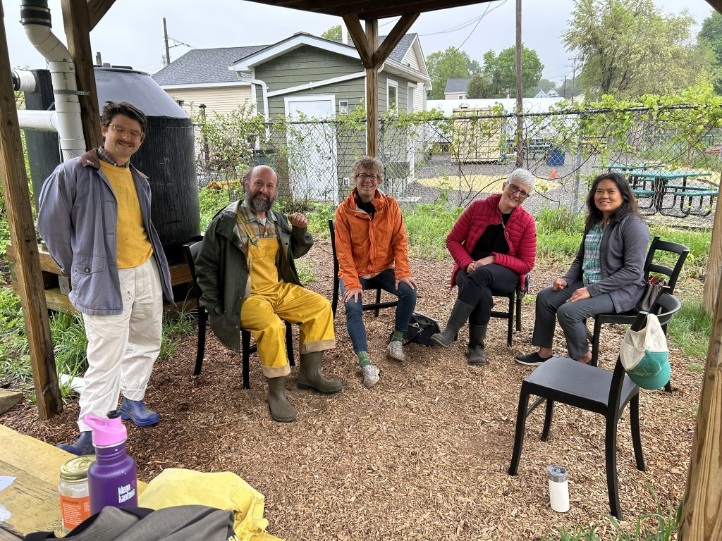 Grow Well supports community garden stewards with meetings and supportive projects. They met 19 times at nine different gardens and via Zoom in 2025. They hosted the third annual garden tour, delivered compost, fixed a garden fence, hosted a co-meeting and cooking workshop with Eat Well, tabled at the Earth Fair, and Cindy hosted a seedling workshop at the Library. See the Grow Well Garden map here!
