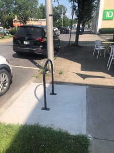 A bicycle rack installed on Hurley Ave.